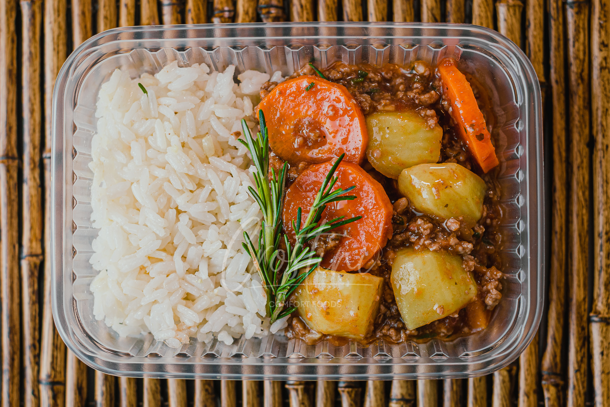 1 Bife de panela acebolado, arroz, feijão e mix de legumes
