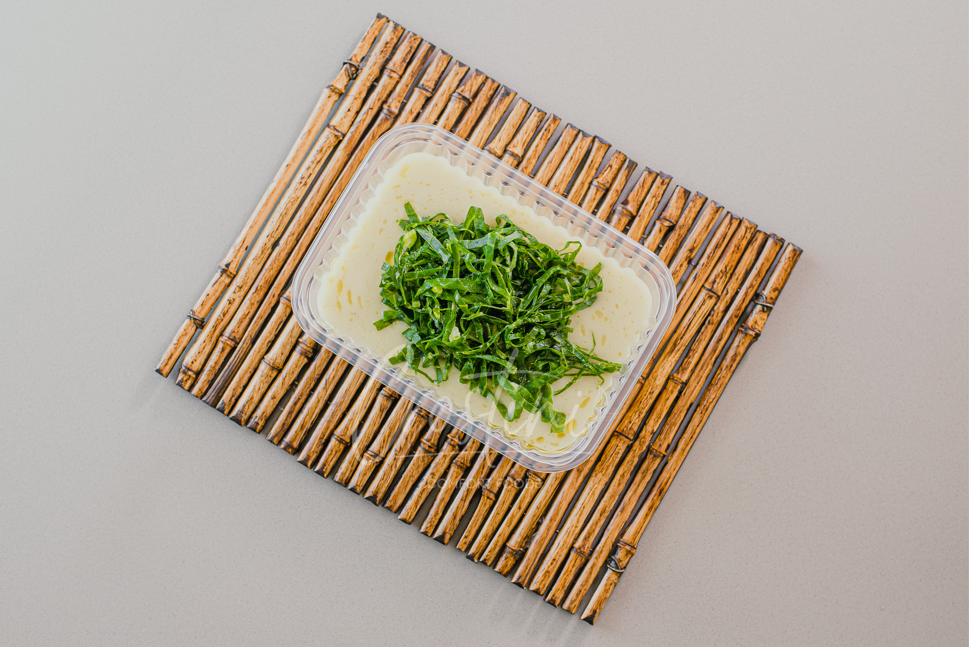 Abobrinha, alho-poró, couve-manteiga, couve-flor, manjericão, cebola, alho e frango desfiado.